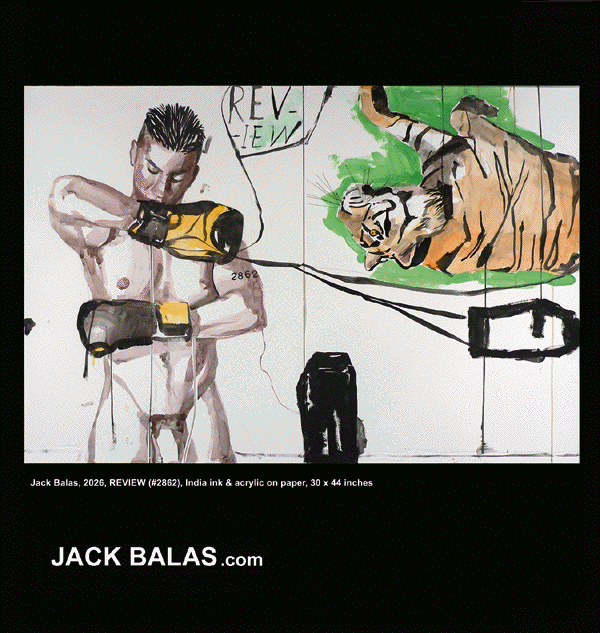 & NEWS ![]() APPEARING IN THE WINTER 2024 PHYSIQUE PICTORIAL from the BOB MIZER FOUNDATION JACK BALAS: SOME DAYS (I JUST WANT TO PAINT) JANUARY 11- MARCH, 2024 JACK BALAS CLAMP 247 WEST 29TH ST NEW YORK, NY 10001 ![]() SPECIAL GUEST DUANE MICHALS SATURDAY JANUARY 13, at 4pm ![]() CONTEMPLATES THE PAINTINGS OF JACK BALAS WHILE TOURING THE AUSCHWITZ NAZI CAMP ![]() AD_MISSION (Those ads in ArtForum) JackRoad Blog Entry