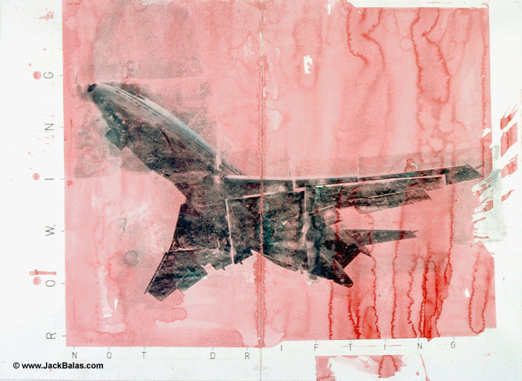 Jack Balas, 1998; ROWING NOT DRIFTING (study); mixed media and acrylic on paper; 44" x 61"