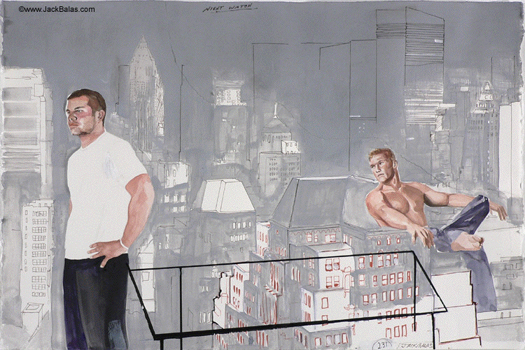 Jack Balas, 2006; THE NIGHT WATCH (#231); watercolor, acrylic and ink on paper; 15" x 23"