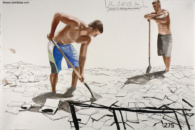 Jack Balas, 2007; THE BURIED SEA (# 275); watercolor and ink on paper; 15" x 23"