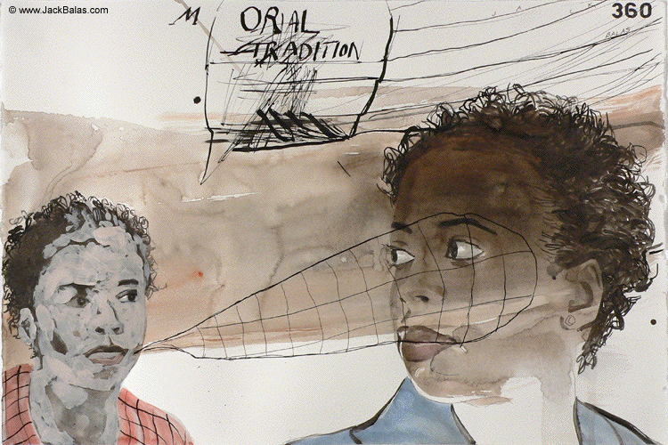 Jack Balas, 2008; THE MORAL TRADITION (from WE'LL BE SEEING YOU series); watercolor, acrylic and ink on paper; 15" x 23"
