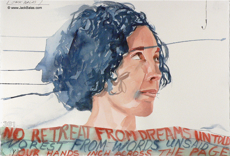 Jack Balas, 2008; NO RETREAT / NO REST (#361) (from series WE'LL BE SEEING YOU); watercolor and ink on paper; 15" x 23"