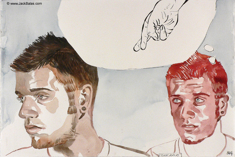Jack Balas, 2008; Untitled (The Crossed Fingers) (from WE'LL BE SEEING YOU series); watercolor and ink on paper, 15" x 23"