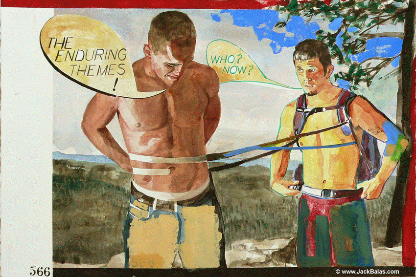 Jack Balas, 2011; THE ENDURING THEMES (#566); watercolor, ink and acrylic on paper; 15" x 22.5"