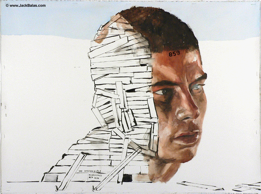 Jack Balas, 2012; THE MYSTERIOUSLY ABANDONED NEW MAN (#859); oil on paper, 22" x 30"