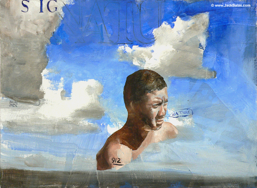 JACK BALAS, 2013; SIGNATURE (#912); oil on wood panel, 11" x 15"