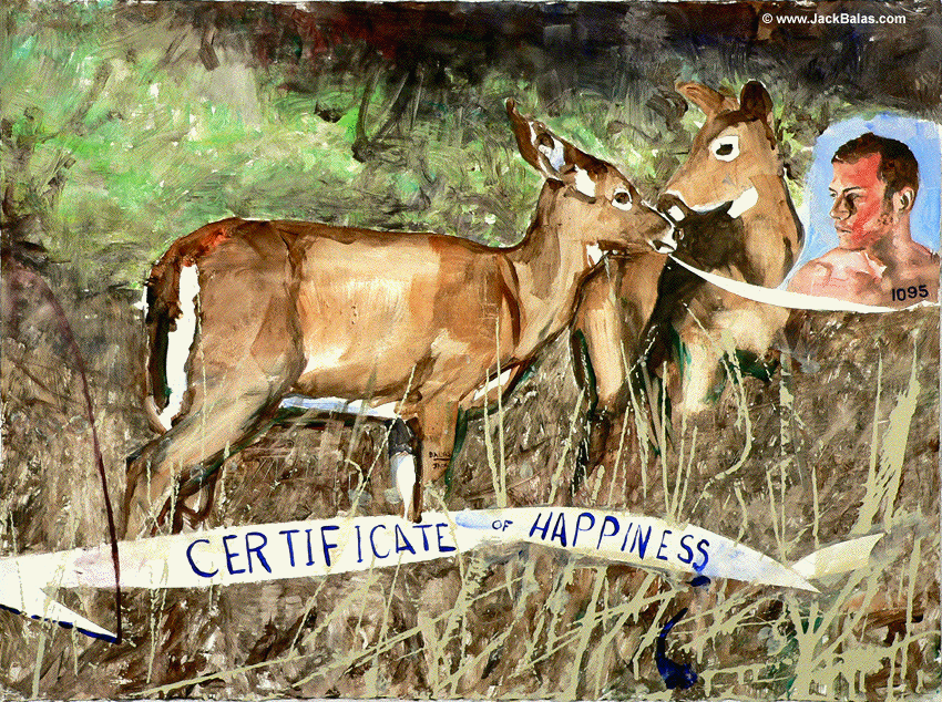 Jack Balas, 2014; CERTIFICATE OF HAPPINESS (#1095); oil and enamel on gessoed paper, 22" x 30"