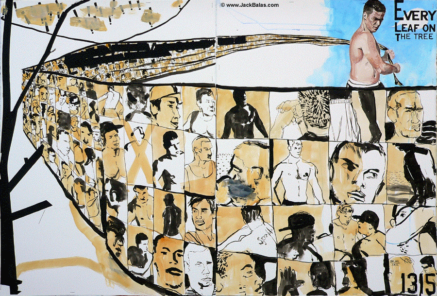 Jack Balas, 2016; EVERY LEAF ON THE TREE (#1315); ink, watercolor & acrylic on 2 paper panels, each 30" x 22.5" (overall 30" x 45")
