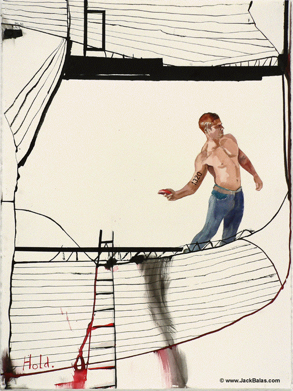 Jack Balas, 2016: HOLD; (#1320); watercolor, acrylic, & Ink on paper, 30" x 23"