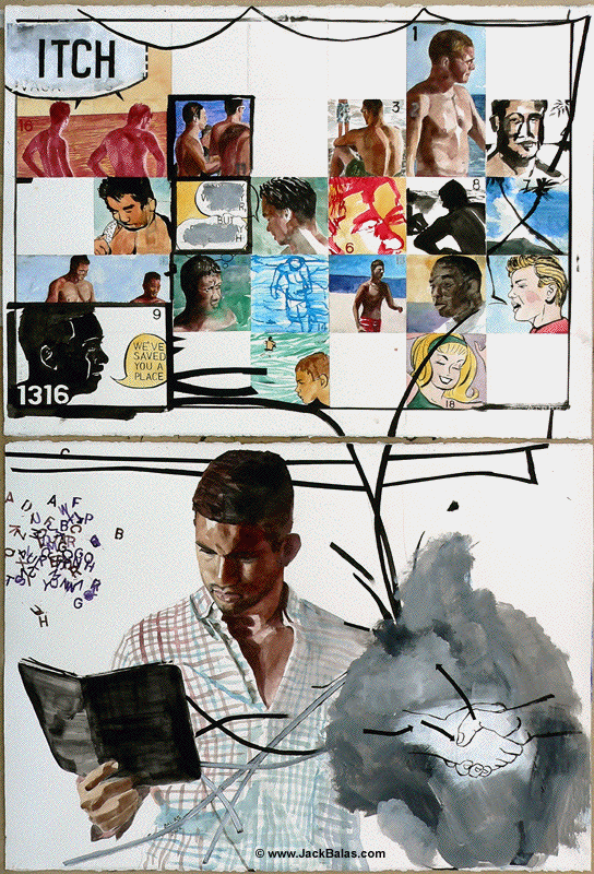 Jack Balas, 2016: ITCH (#1316); watercolor, acrylic, & ink on 2 paper panels, 45" x 30" overall.