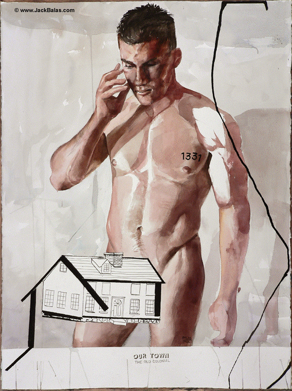 Jack Balas, 2016; OUR TOWN (THE OLD COLONIAL) (#1331); watercolor, ink and acrylic on paper, 30" x 22"