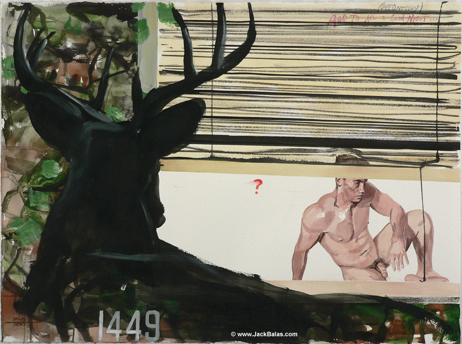 Jack Balas, 2017; AND TO ALL A GOOD NIGHT (WEDNESDAY) (DEER) (#1449); watercolor, ink and acrylic on paper, 22" x 30"