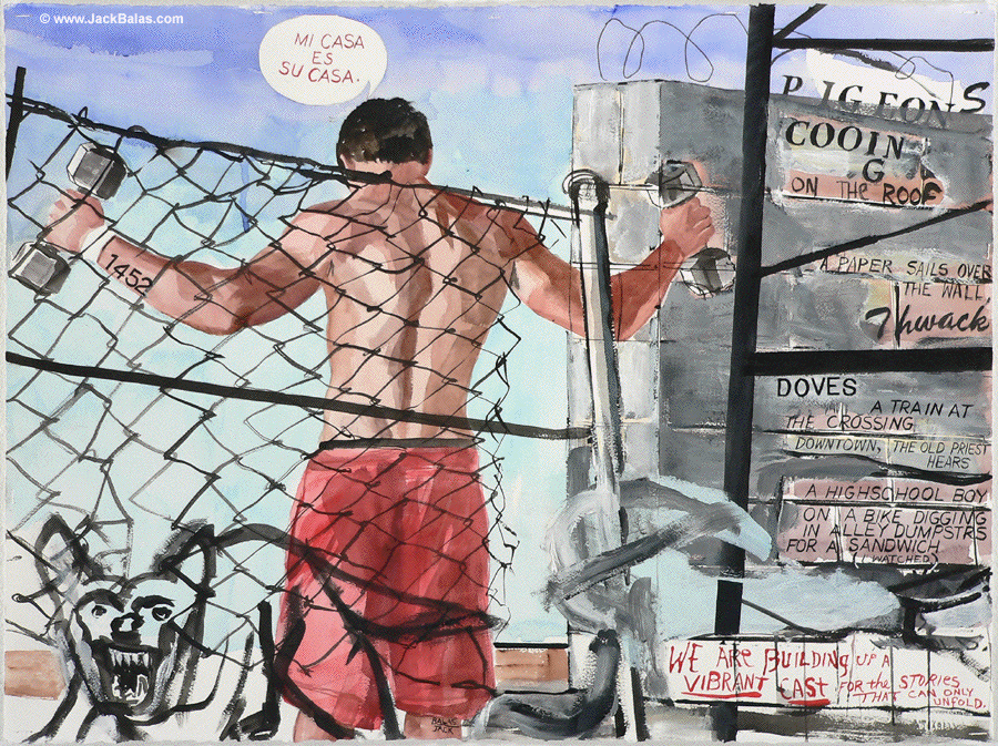 Jack Balas, 2017; MI CASA ES SU CASA (Study) (#1452); watercolor, ink & acrylic on paper, 22" X 30"