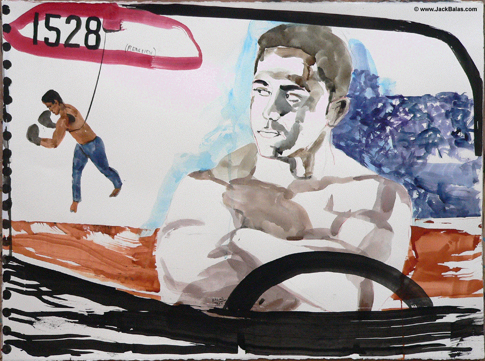 Jack Balas, 2017; REARVIEW (#1528); watercolor & ink on paper, 22" x 30"