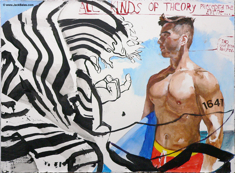 Jack Balas, 2018; ALL KINDS OF THEORY (#1641); ink and oil on gessoed paper, 22" x 30"