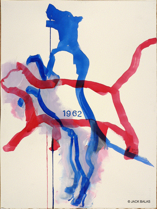 Jack Balas, 2020; CATS N DOGS (1) (#1962) India ink on paper, 20x15 inches.
