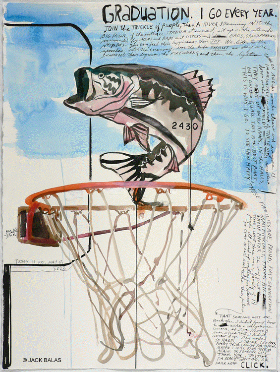 Jack Balas, 2023; GRADUATION (CLICK) (#2430); India ink & acrylic on paper, 30x22 inches