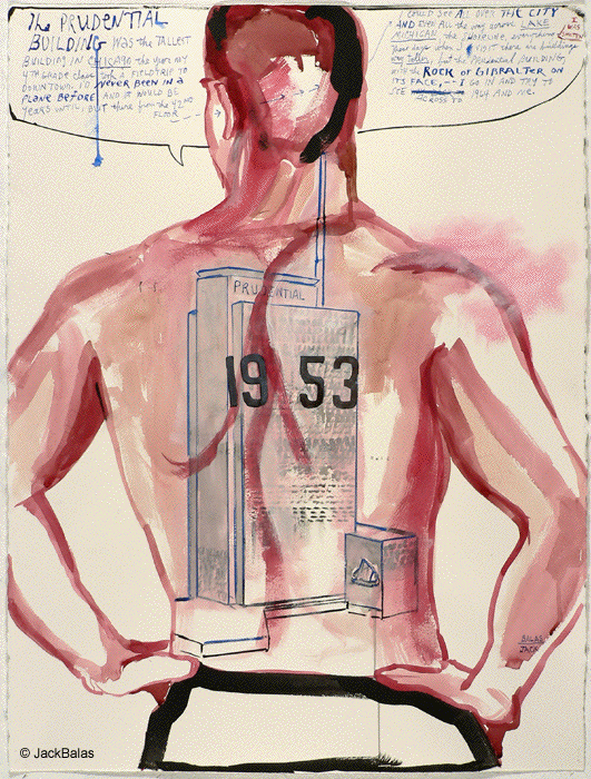 The Prudential Building was the tallest building in Chicago the year my 4th grade class took a field trip to downtown. I'd never been in a plane before, and it would be years until, but there from the 42nd floor I could see all over the city and even all the way across Lake Michigan, the shoreline, everything. I was smitten. These days when I visit there are buildings way taller, but the Prudential Building, with the Rock of Gibralter on its face- I go in and try to see across to 1964 and me.
