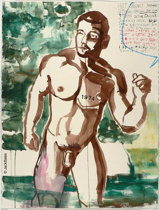 Hot August Saturday afternoon. Red sun. Study after Eakins Swimming Hole, maybe on the Wapsipinicon, but more likely on the walls of the Amon Carter in Fort Worth. 24-7 in a big gold frame. I love Fort Worth. I go swimming every chance I get. |