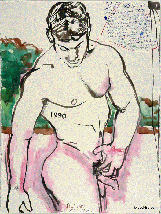 Jack Balas, 2020; ALL DAY, ALL DAVE (#1990); India ink on paper, 30x22 inches