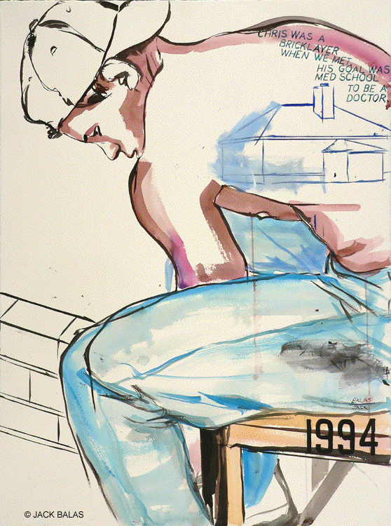 Jack Balas, 2020: BRICKLAYER (#1994); India ink on paper, 30x22 inches