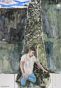 ![]() YOUNG MAN LEADING A BOY LEADING A PICASSO (#2782) India ink & acrylic on 2 paper panels, 24 x 36 inches overall |