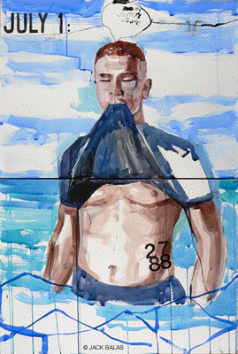 Current Paintings: 2024 -- 2025 SEEKING QUESTIONS TO LIFE'S BIG ANSWERS The figure has taken center stage since the early 2000's, and there are perhaps four different levels on which one can consider the work: 1) on the beauty level, by which I mean the combination of painting media (watercolor, oil, ink) and styles (abstraction, representation) in a complementary tension that augments the imagery involved; 2) on a political level, in that my goal with the guys who dominate the images and constitute my muse is to populate an art world with them-- an art world where the female image, nude or otherwise, is about as normal as a burger and fries, while the male image continues to be considered, by some, suspect, and is thus in short supply; 3) on the textual level, presenting titles that can be read in varying ways and short stories that are written before or after the images come along, but in any case are springboards for the reader's imagination; and 4) on the transcendent level, an attempt to depict a thoughtful, if not vulnerable, Everyman, reaching beyond the fleeting surface idealization associated with youth and hopefully going far in terms of metaphor, poking around such timeless ideas as: truth, beauty, faith, time, the infinite, what we learn and what we know. It may seem questionable indeed these days to even concern myself with such unanswerables, but in an era when political and spiritual leaders assert that they in fact have the answers for us all, I think that art has the capacity to imagine otherwise, to offer some transcendent spark to bridge the gap between intent and form, between idea and the evidence of our lives. Muse indeed. Note: At times my focus is on paper works in series, for instance the MUSE/MUSEUM watercolors and TATTOO DETOUR drawings from Honolulu. Therefore, select images from these series have been incorporated onto this page along with the "usual" canvases. More images from these series can be found on their dedicated pages. Note 2: As of December, 2022, I am including a few PHOTOGRAPHS in the mix, to contextualize the paintings within my "usual" realm of visual interests. |