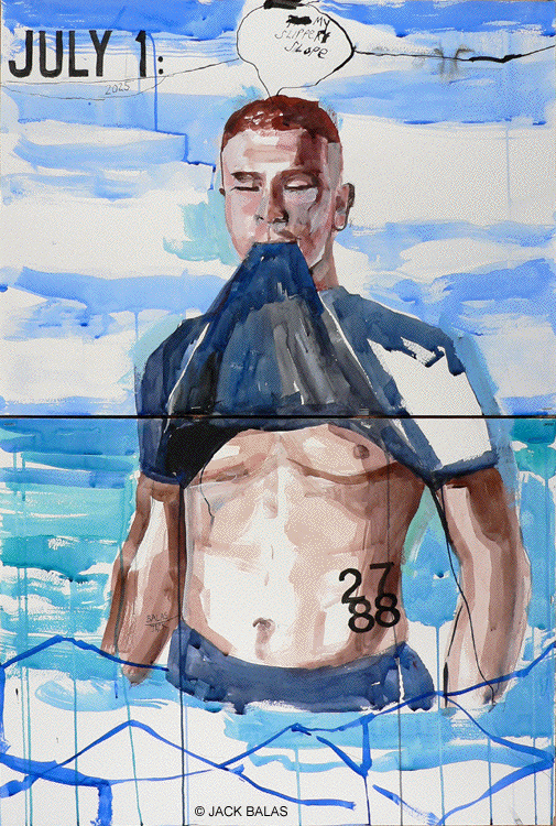 ![]() JULY 1: MY SLIPPERY SLOPE (#2788) India ink & acrylic on 2 paper panels, 36 x 24 inches overall |