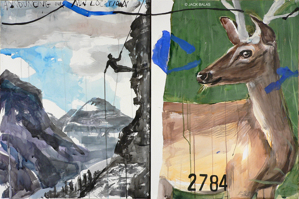 ![]() ANNOUNCING OUR NEW LOCATION (#2784) India ink & acrylic on 2 paper panels, 24 x 36 inches overall |