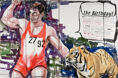 DDDD ![]() THE BIRTHDAY! (#2792) India ink & acrylic on 2 paper panels, 24 x 36 inches overall |