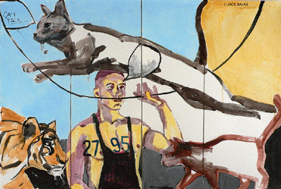![]() CAT TALE (#2795) India ink & acrylic on 2 paper panels, 24 x 36 inches overall |