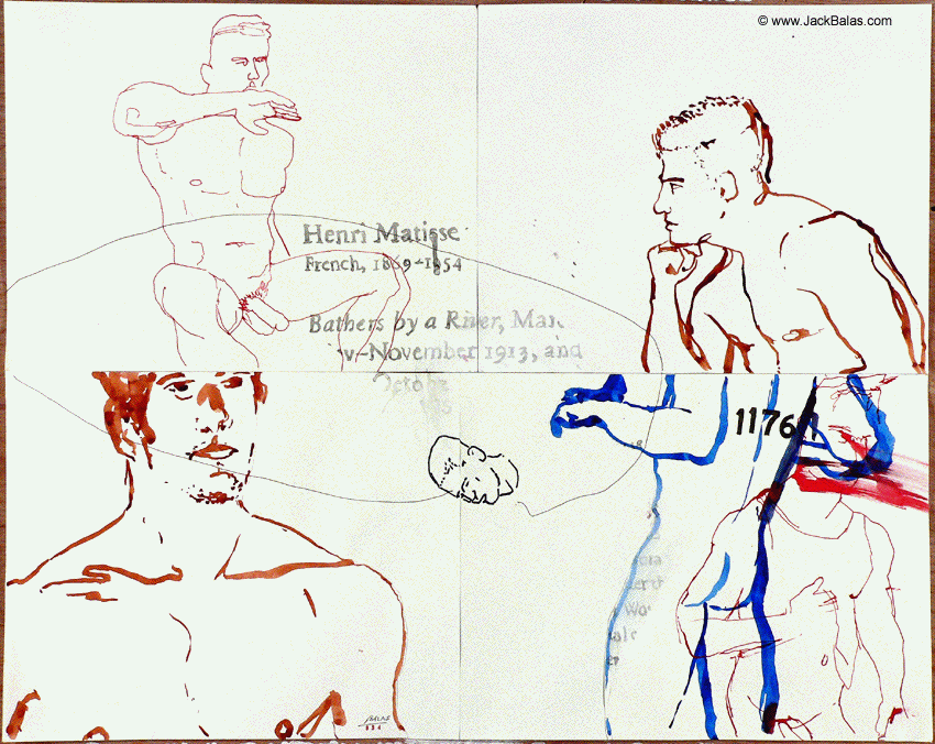 Jack Balas, 2014; HENRI MATISSE, BATHERS BY A RIVER (Muse/ Museum Series) (# 1176); ink on four sheets of paper, 22" x 28" overall