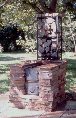 Jack Balas, 1999-2000; QUESTIONS NEVER ASKED NOR ANSWERED; steel, sandstone & split logs; 74"x 38" x48"