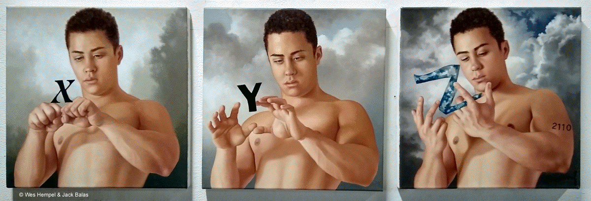 Wes Hempel and Jack Balas, 2021; XYZ (#2110); oil on 3 canvases, 16" x 16" each