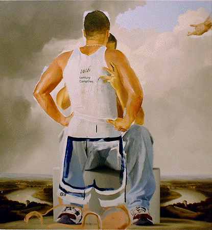 © Wes Hempel & Jack Balas, 2004; 16th CENTURY CAMPFIRES (#89); oil and enamel/ canvas; 48" X 44"