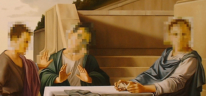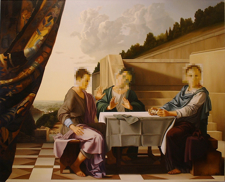 Wes Hempel & Jack Balas, ©2005; COMMUNION ACCIDENT; oil on canvas; 58" x 72"