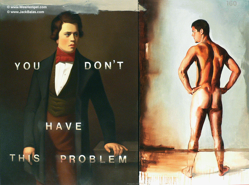 Wes Hempel and Jack Balas; YOU DON'T HAVE THIS PROBLEM (#160); oil on canvas (diptych); 40" x 54"